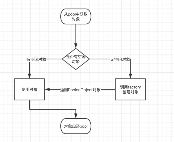 越来越多的框架在选择使用apache commons-pool2进行池化的管理,如jedis-cluster,commons-pool2工作的逻辑如下图所示: