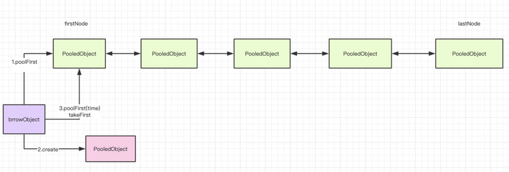 我们在使用commons-pool2中获取对象的时候,会从双端队列中阻塞等待获取元素(或者是创建新对象),但是如果是应用程序的异常,一直未调用returnObject或者invalidObject的时候,那可能就会出现对象池中的对象一直上升,到达设置的上线之后再去调用borrowObject的时候就会出现一直等待或者是等待超时而无法获取对象的情况。
