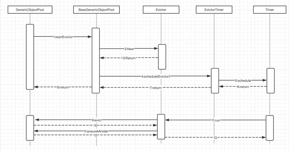 继续跟进代码可以发现,调度器中设置的清理方法的实现逻辑实际在对象池中定义的,也就是由GenericObjectPool或者GenericKeyedObjectPool来实现,接下来我们继续探究对象池是如何进行对象回收的。
