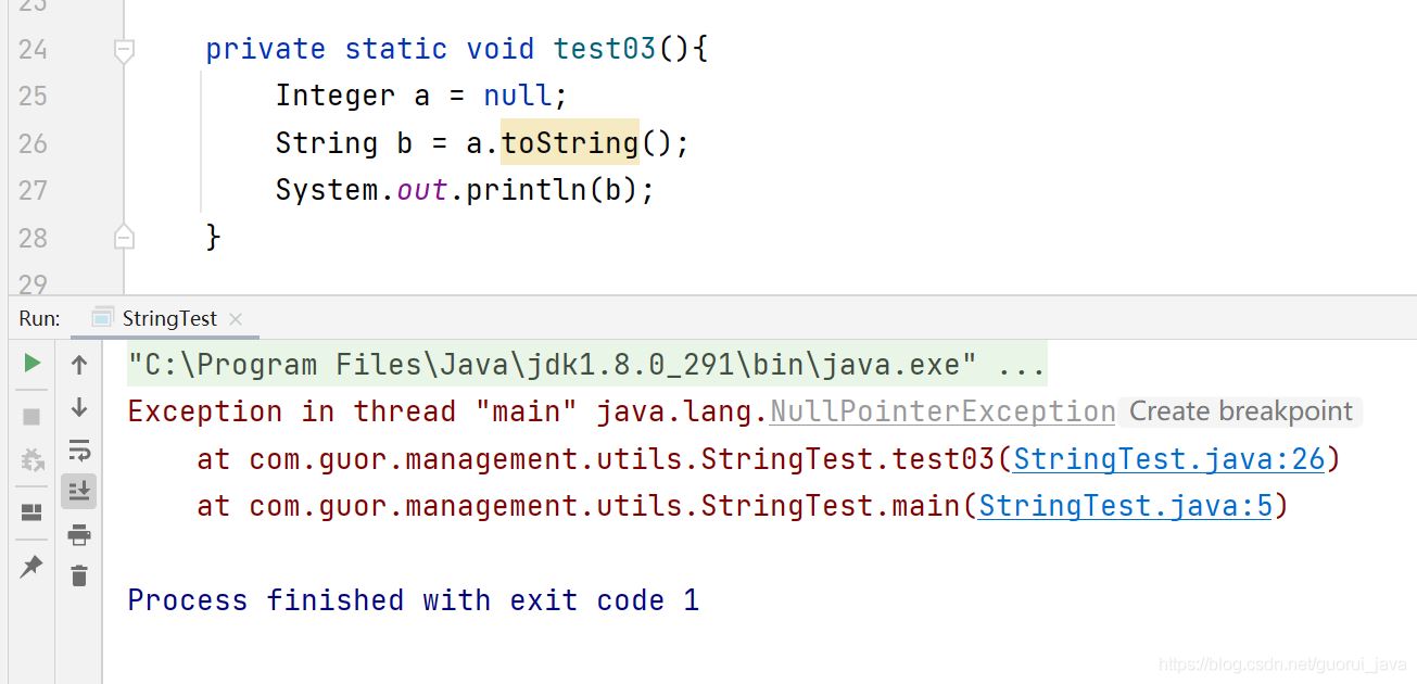 2、String.valueOf(),推荐使用,返回字符串“null”
