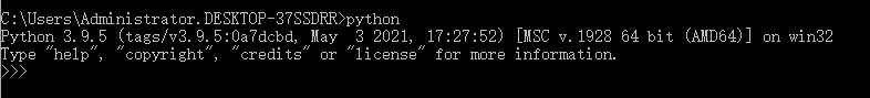 验证安装是否成功 搜索中录入cmd 打开命令窗口 录入python显示一下版本号表示安装成功
