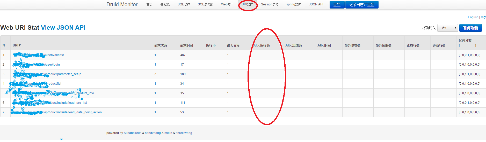 添加完毕之后,再来看一下上述两个TAB ( SQL监控以及 URI监控)下JDBC的内容: