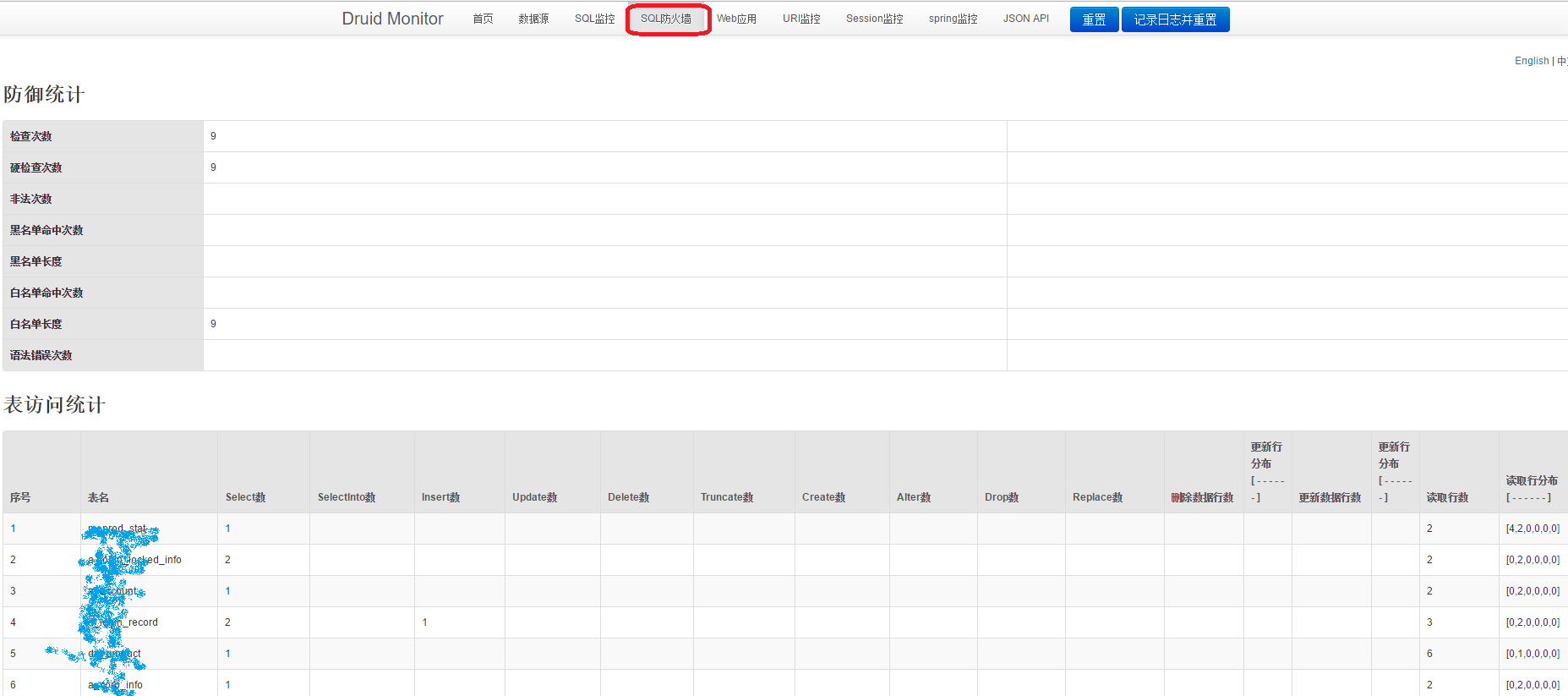 配置好Wallfilter, 我们就可以看到SQL防火墙 TAB下的内容了。