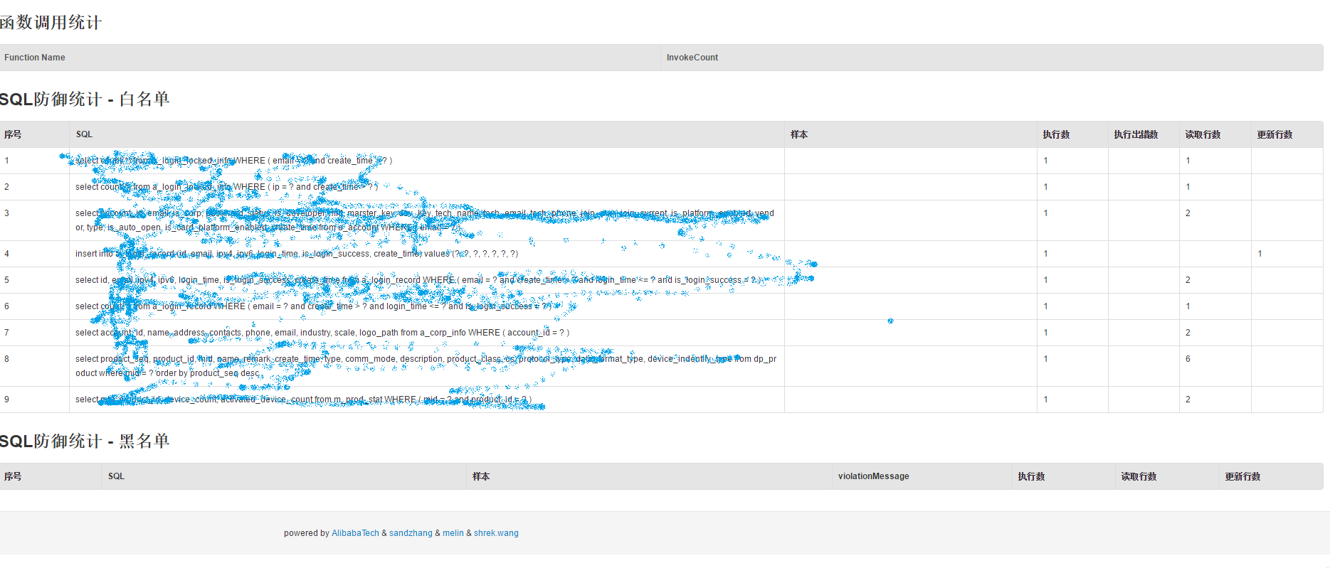 因为是默认状态,没有配置任何拦截的属性信息,所以,SQL的执行都在白名单中展示出来了。