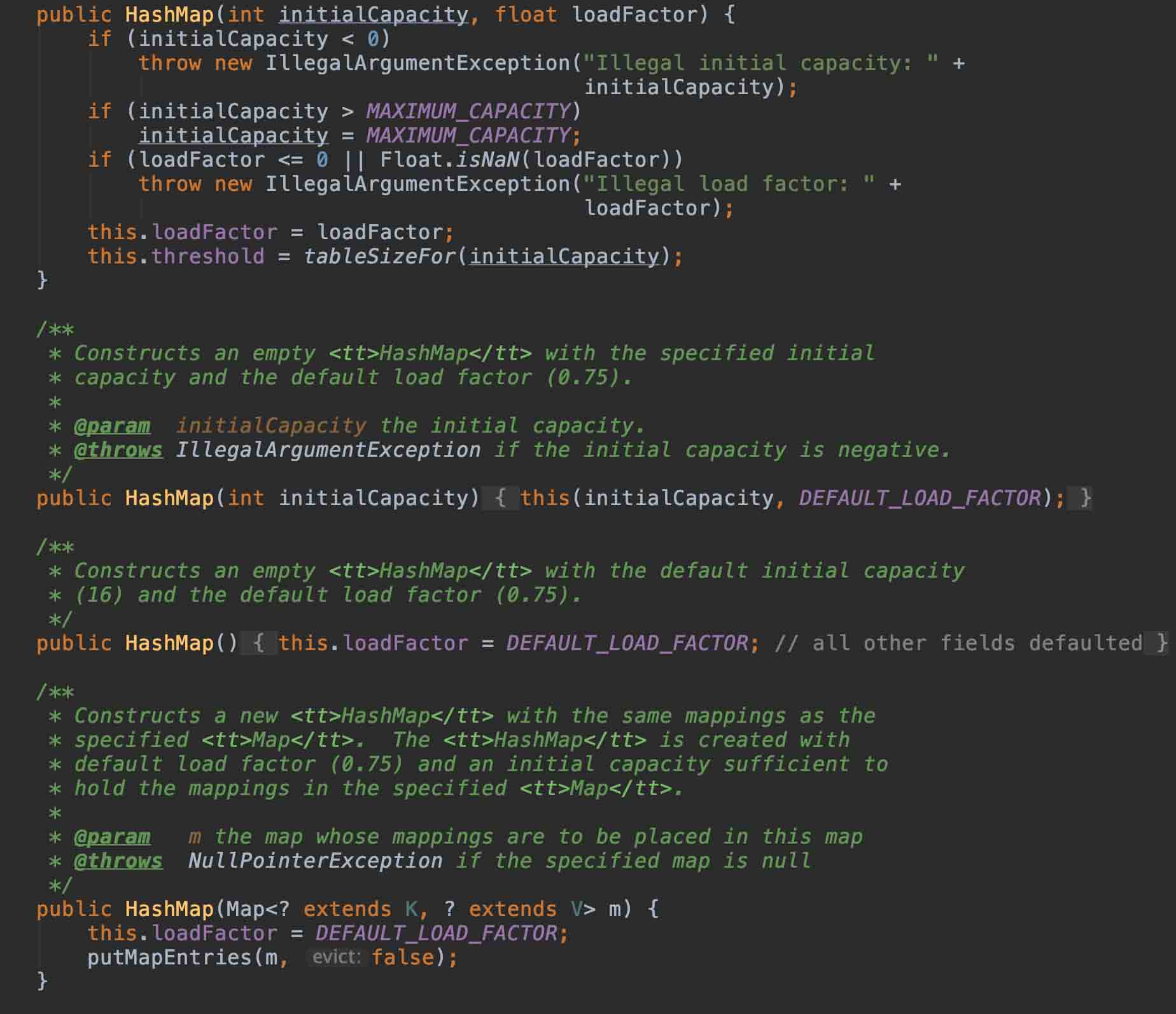 HashMap(int initialCapacity, float loadFactor) 指定初始化大小和加载因子大小;