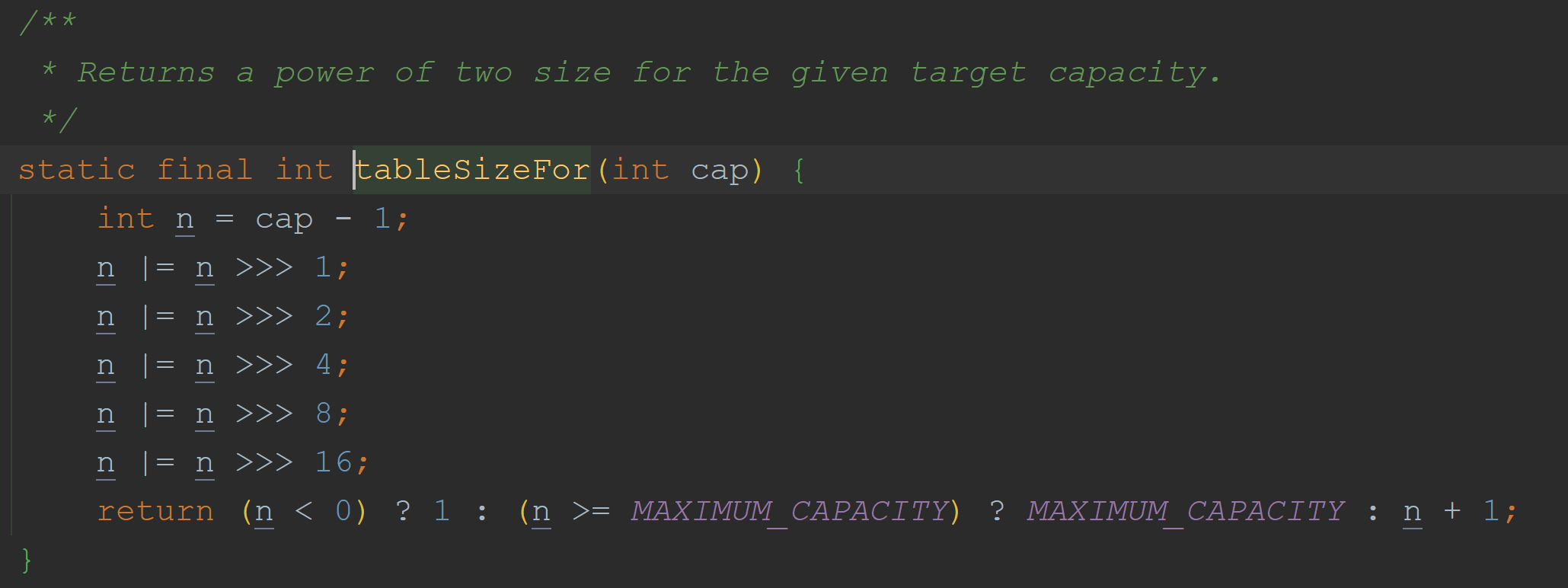 return (n < 0) ? 1 : (n >= MAXIMUM_CAPACITY) ? MAXIMUM_CAPACITY : n + 1;