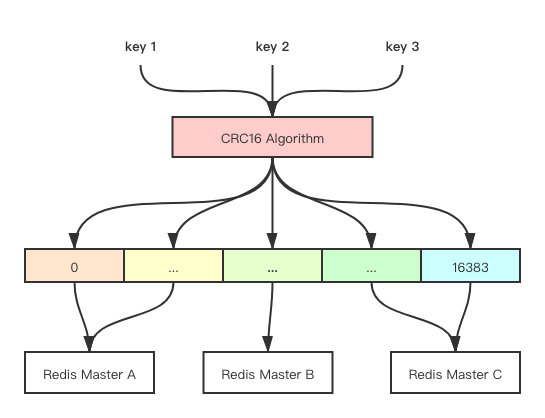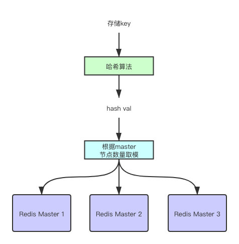 首先就是对key计算出一个hash值,然后用哈希值对master数量进行取模。由此就可以将key负载均衡到每一个Redis节点上去。这就是简单的哈希算法的实现。