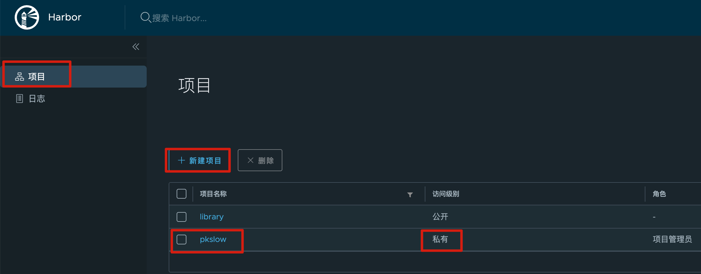 退出admin,用新创建的用户登陆,然后创建一个项目,用于存放镜像: