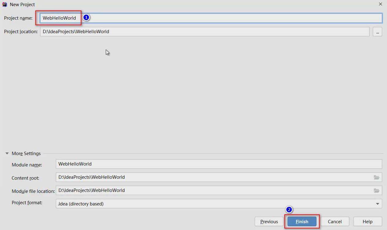 填写项目名称,并确保保存项目的文件夹路径无误后,即可点击Finish按钮,以完成创建项目: