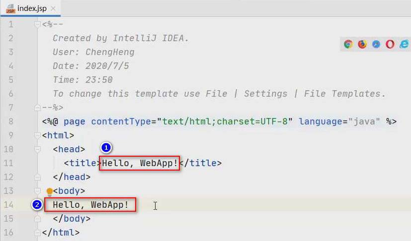 打开index.jsp文件,该文件目前只有最基础的文件结构: