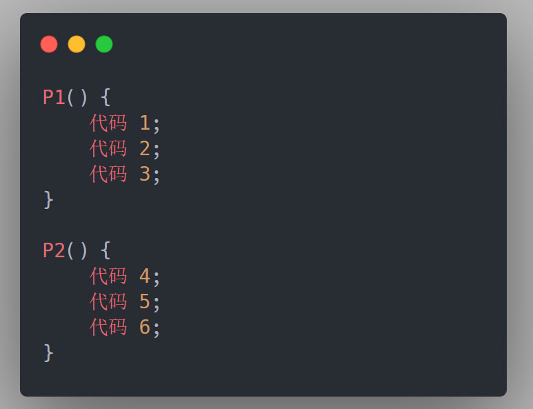 举个例子,以下两个进程 P1、P2 并发执行,由于存在异步性,因此二者交替推进的次序是不确定的。假设 P2 的 “代码4” 要基于 P1 的 “代码1” 和 “代码2” 的运行结果才能执行,那么我们就必须保证 “代码4” 一定是在 “代码2” 之后才会执行。