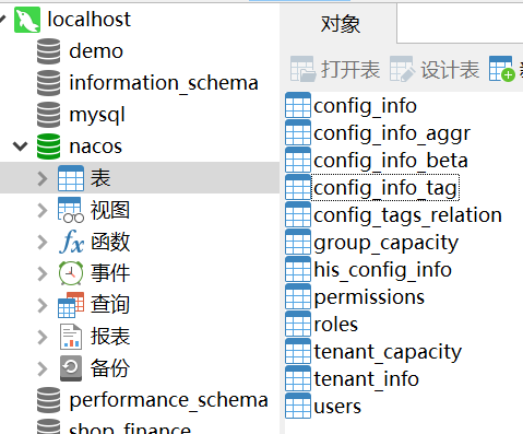 1.创建数据库库,使用初始化文件nacos-mysql.sql初始化
