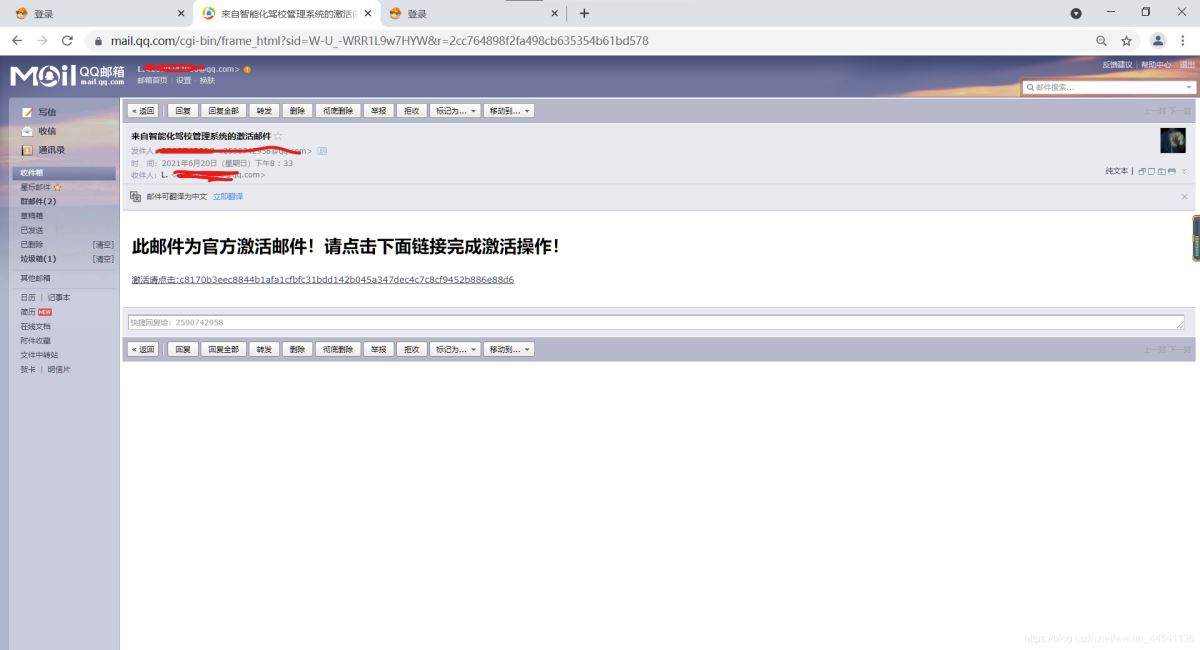 如下,打开自己绑定的邮箱点击下面的激活链接,激活成功后跳转到登录页面