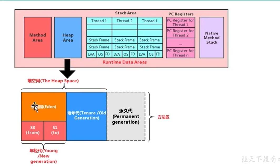 - 从内存模型而不是垃圾收集角度,对eden区域进行划分,jvm为每个线程分配了一个私有缓存区域