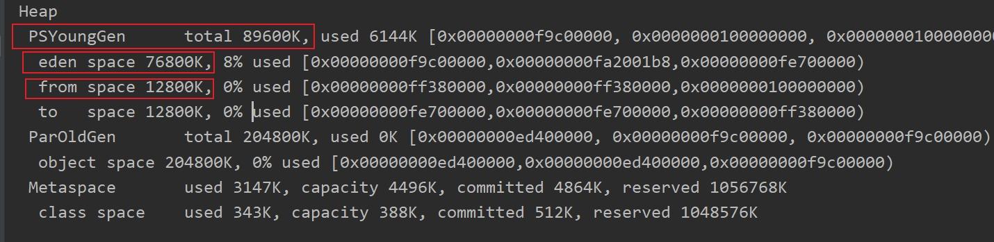 可以看出通过参数设置的内存大小 只与新生代(Eden+s0+s1 ),老年代有关,而在逻辑上还要加上元空间。