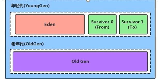 - 其中年轻代可以划分为Eden空间,survivor0空间和survivor1空间(有时也叫 from区,to区)