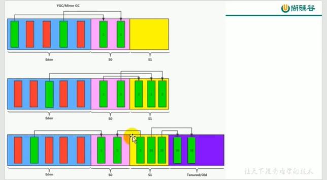 2.当伊甸区满的时候,程序需要创建时,jvm的垃圾回收将对伊甸园区进行垃圾回收(minor gc)