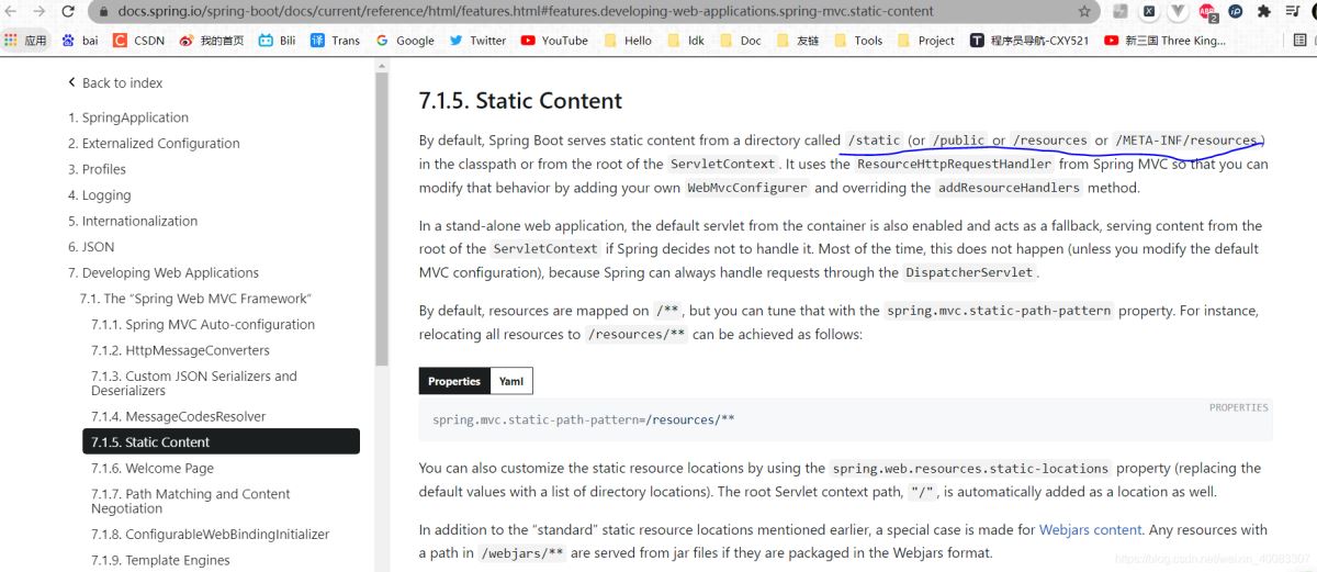 没错,第二个addResourceHandler 方法就表明 / **下的所有请求,都在这四个默认的位置去找静态资源映射 ,这四个目录在官方文档中提到过。