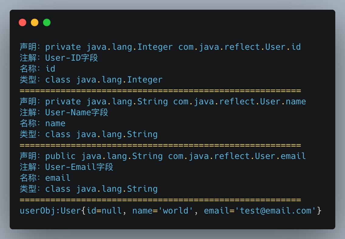 Field[] fieldArr = userClass.getDeclaredFields() ;