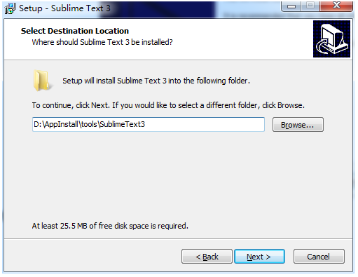 2)选择Sublime3的安装目录。