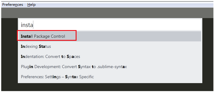 直接使用组合键ctrl+p,在输入框输入Install Package Control回车。