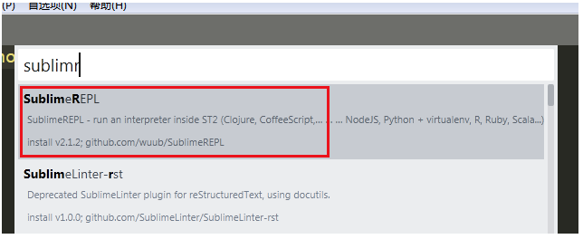 点击Preferences —> 选择Package Control:Install Package —> 输入SublimeREPL