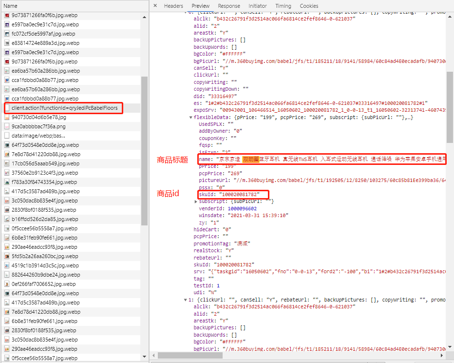 获取json数据后,提取出商品标题和商品ID