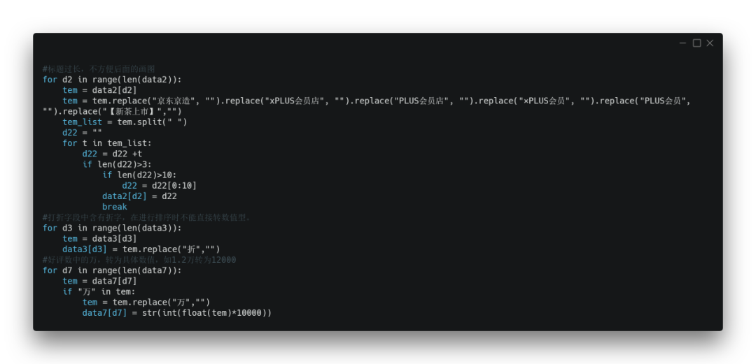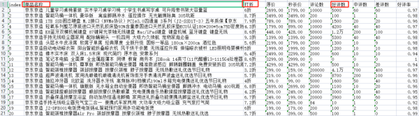 需要清洗的内容,主要有图中这三列(标题、打折、好评数)。