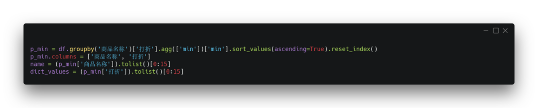 从清洗后数据中取出:商品名称和打折这两列,进行【排序】从打折最大到打折最小。最后取出前15名进行可视化