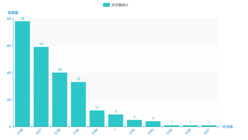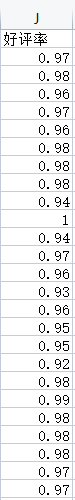 从数据中取出:好评率这列,对不同的好评率进行统计,如好评率是100%(1)的商品多少件,好评率99%(0.99)的商品多少件等。