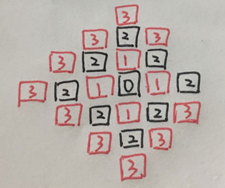 step[next.i][next.j] = curval + 1 // 下一步是当前步数+1