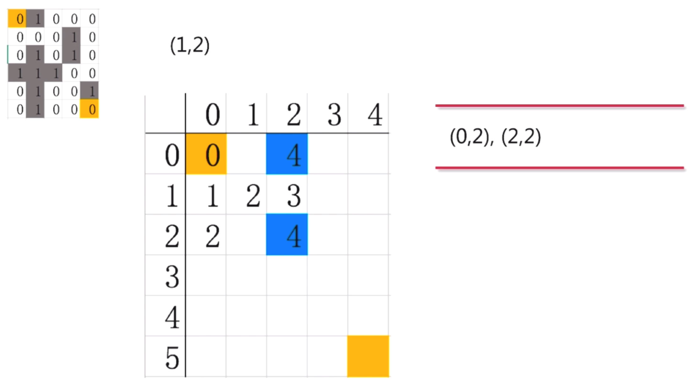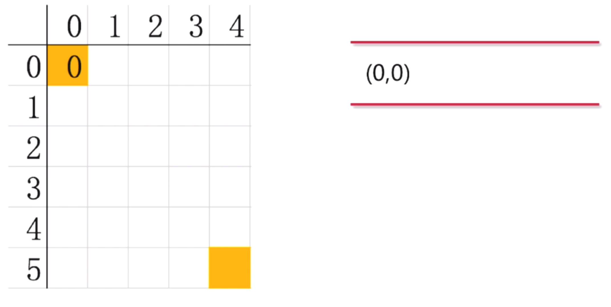 第二步: 定义一个队列, 用来保存已经发现还未探索的点, 队列里的初始值是(0,0)点