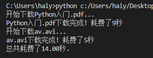 print('%s下载完成! 耗费了%d秒' % (filename, time_to_download))