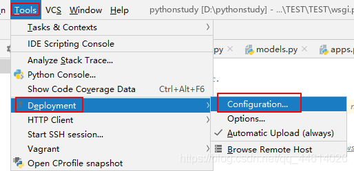 1、点击 Tools(工具),点击 部署Deployment(部署),点击Configuration(配置)
