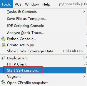 点击 Tools(工具),点击 部署Start SSH session