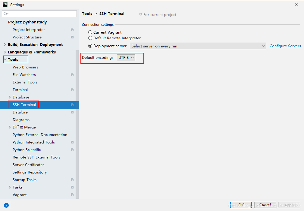 注意: 如果pycharm的 Terminal终端出现中文乱码的情况,那么需要修改pycharm的Tools配置
