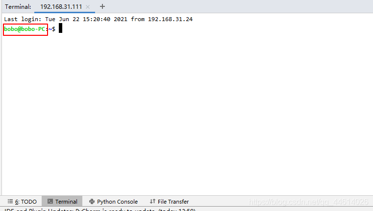 如果pycharm的 Terminal终端显示对应的服务器信息,说明已连接上远程服务器,可以像在服务器终端一样,进行操作