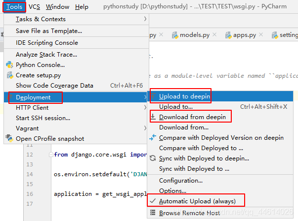 如果勾选了Automatic Upload (always),那么,你在本地修改了代码,pycharm会自动将代码同步到远程服务器上(真实项目中不推荐这样,会造成代码冲突,当然,真实项目中会使用到git。自己的私人服务器无所谓)