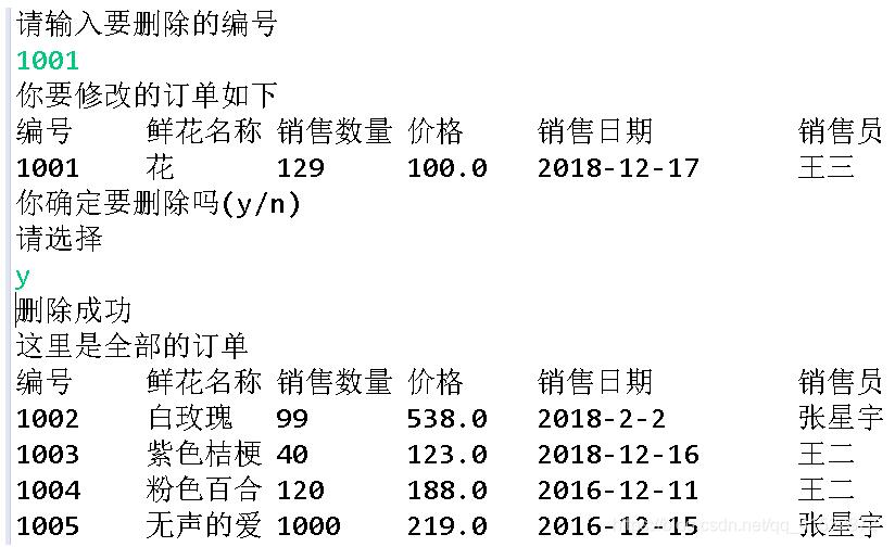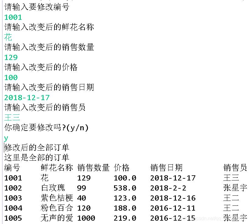 2.使用数组的相关方法实现鲜花销售系统的查询订单、修改订单、删除订单功能。