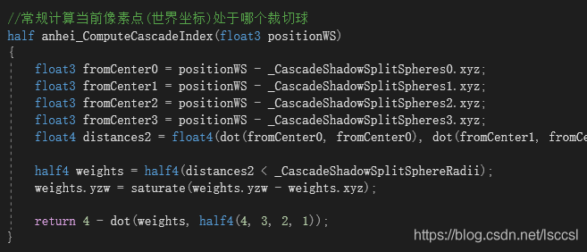half anhei_ComputeCascadeIndex(float3 positionWS)