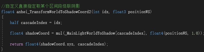 float4 shadow_coord0 = anhei_TransformWorldToShadowCoord2(0, i.world_pos);