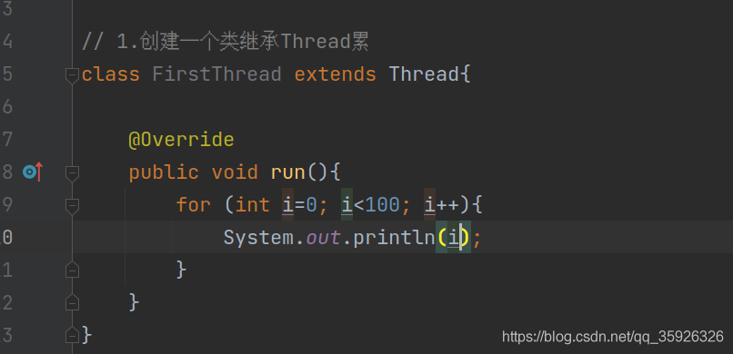 创建一个类继承Thread类,并重写run();因为run()是线程具体执行的方法