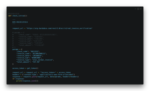 所有在上面的开始识别之前(自己公司的发票可能不需要查验这步),先调用一下第三方的接口,对发票进行识别,识别通过之后再将其提取发票中目标内容。