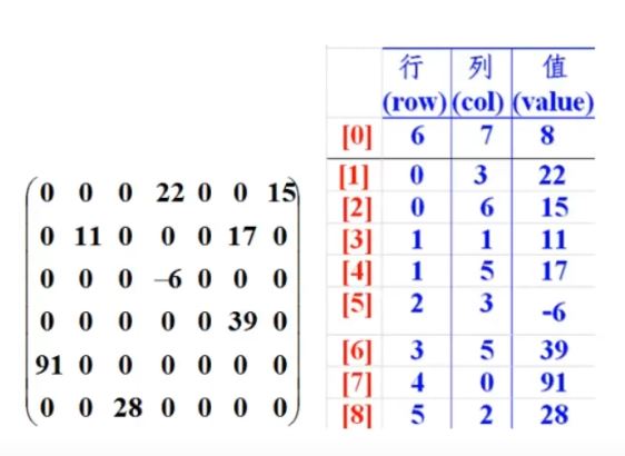 - 把具有不同值的元素和行列及值记录在一个小规模的数组中,从而缩小程序的规模