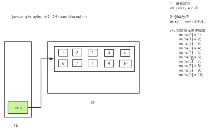 ③数组长度是确定的,不可变得。如果越界,则报:ArrayIndexOutOfBounds