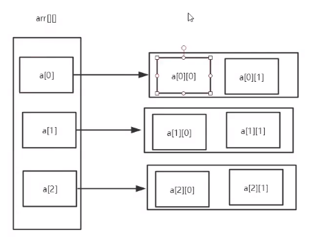 int[][] a = new int[2][5] //二维数组a可以看成一个两行五列的数组。