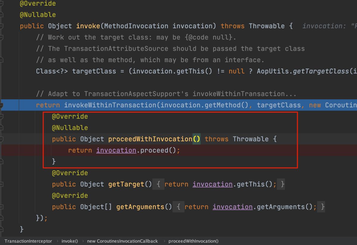 userService.updateUserInfo();这里的 userService 就是代理对象;会被CglibAopProxy.DynamicAdvisedInterceptor#intercept方法拦截; TransactionInterceptor#invoke被事务拦截器拦截TransactionAspectSupport#invokeWithinTransaction事务处理AbstractPlatformTransactionManager#getTransaction会在这里调用AbstractPlatformTransactionManager#startTransaction方法,来开启事务。