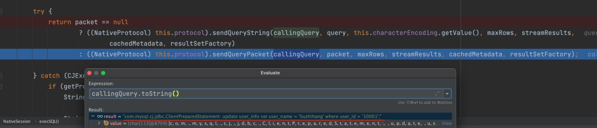connection.prepareStatement("update user_info set user_name = 'liuzhihang' where user_id = '1001';").executeUpdate();