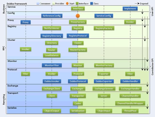 - 配置层(Config):对外配置接口,以ServiceConfig和ReferenceConfig为中心。