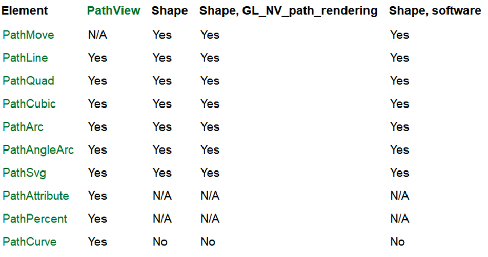 下表概述了各种路径元素的适用性: